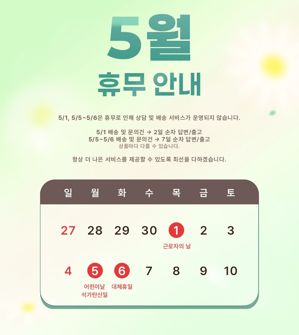 격주 금요일 배송/고객센터 휴무 일정 안내